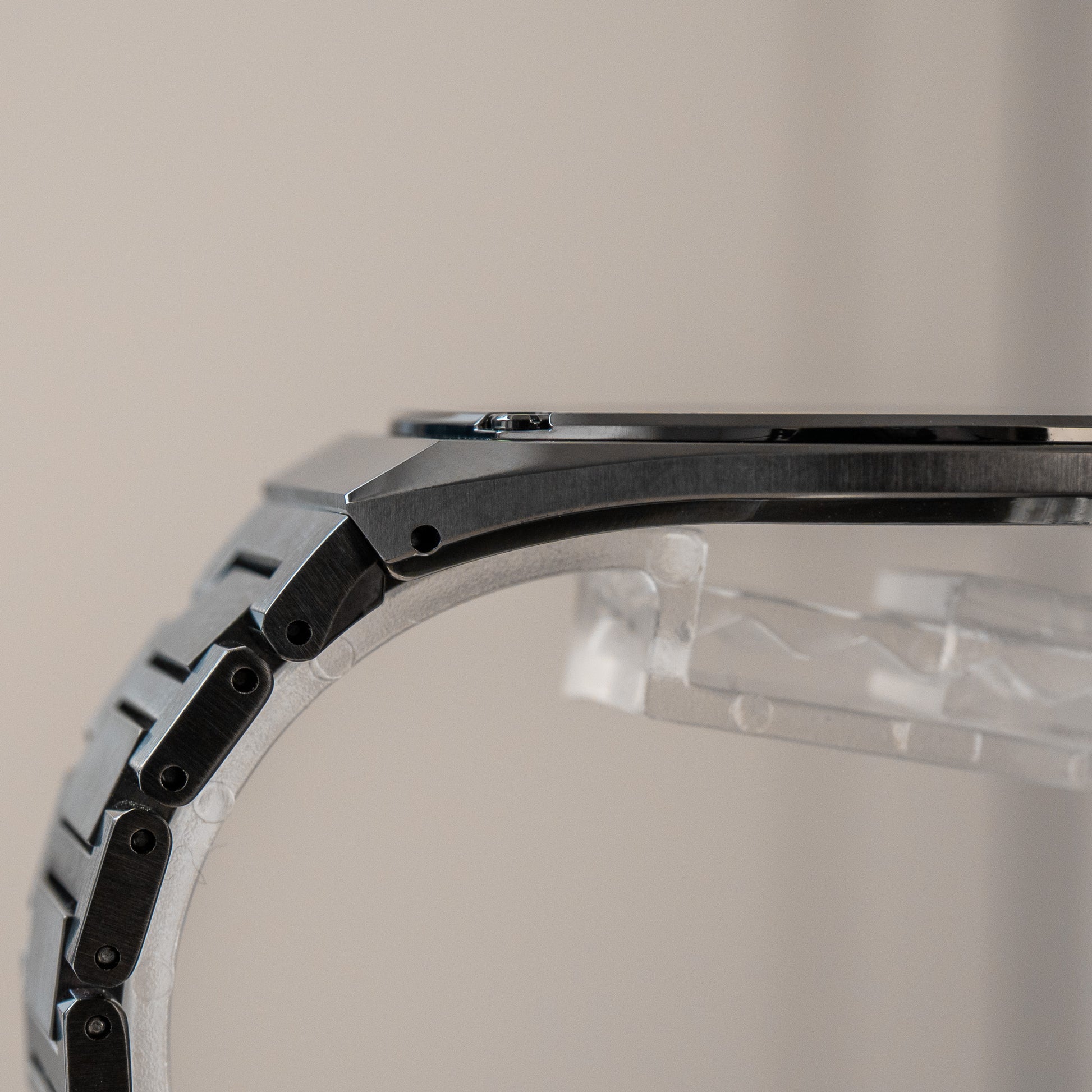 The First. The 1mm-thick movement housed within the 3.8mm case has been given a sporty upgrade via an integrated bracelet - but don’t worry, it’s still exceptionally light. With the full links, the whole thing weighs just 96 grams, but it’s closer to 75 grams if you have a 6 to 7 inch wrist. Ever wanted to forget you’ve wearing a watch? This is the piece for you.