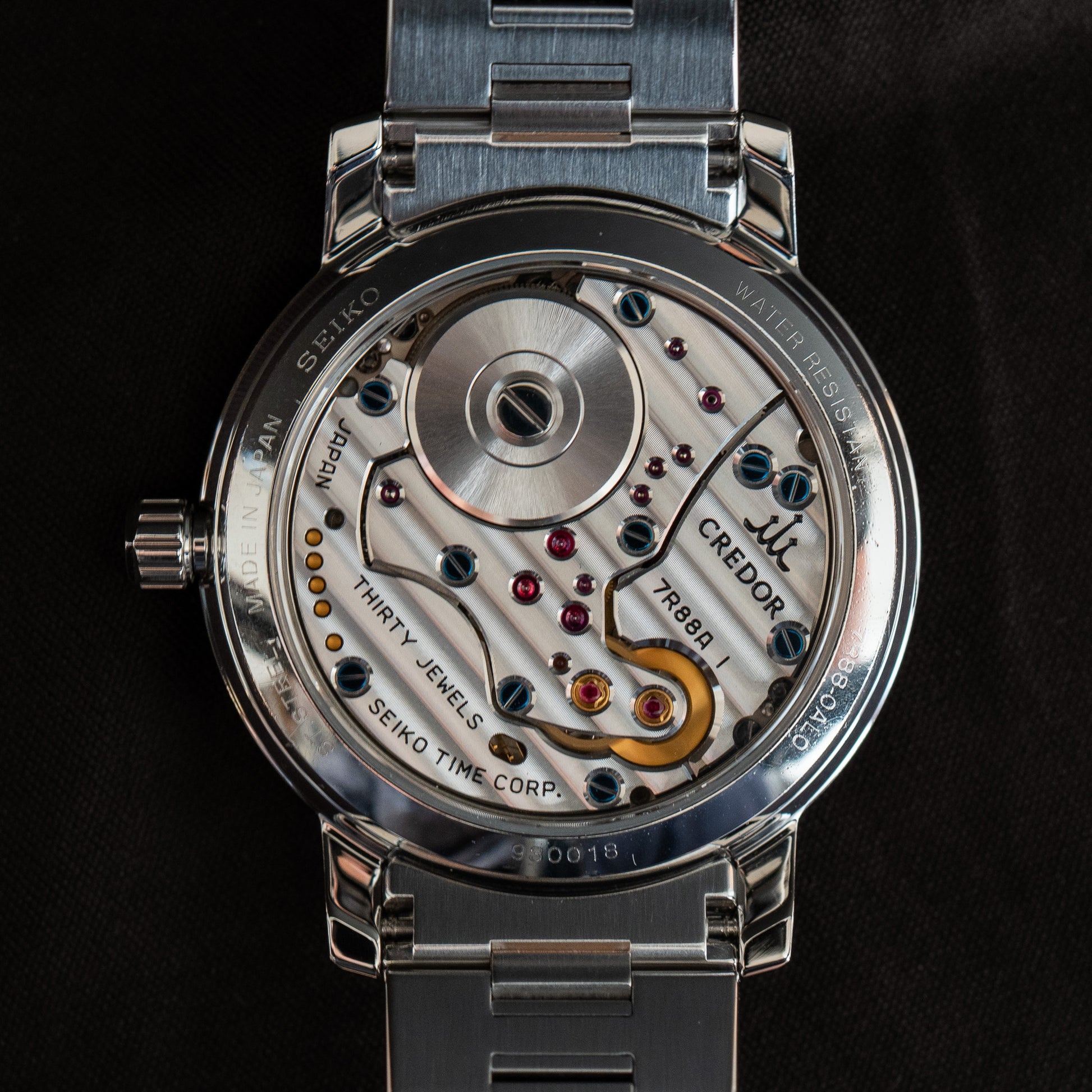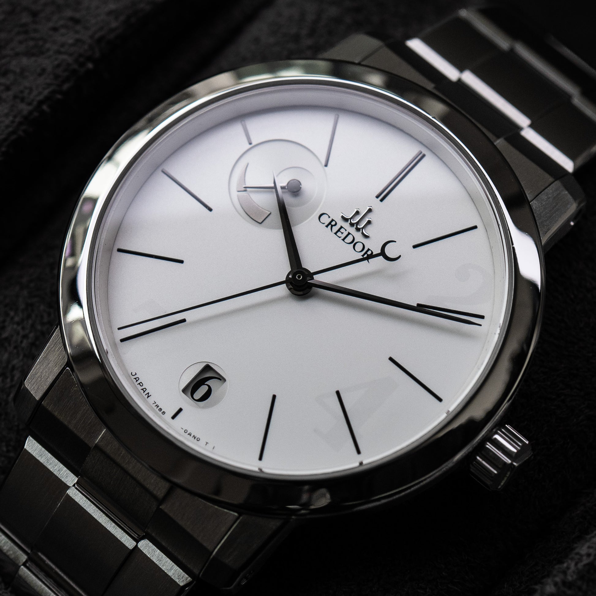 The Design. Eerily floating above the dial are Credor’s traditionally shaped 2, 4 and 7 - but they’re anything but traditionally applied. The GCLH models epitomise the collection, and Credor honoured their design with half a dozen colour variants - namely the GCLH985, 987, 989, 993, 995, and 997. But the 991 stands alone. It’s the only one to have the 24/7 markers etched into the underside of the crystal, rather than applied to the dial.
