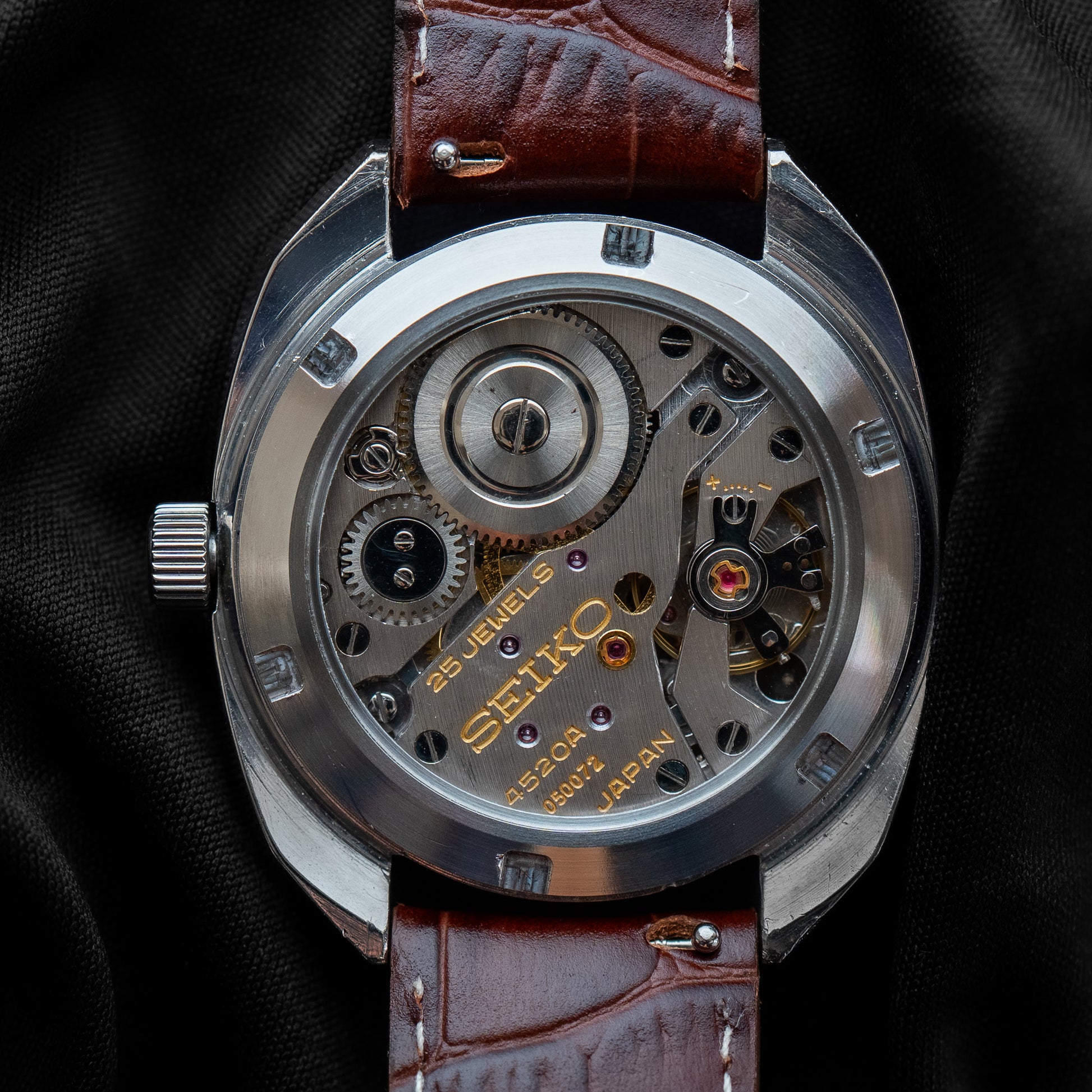 The Caseback. You lose the iconic medallion, but you gain a clear view of the movement - arguably the most important part of any vintage Grand Seiko. The 4520-7000 on offer today only comes with the exhibition caseback. I’m not privy to what fate befell the original - perhaps it was damaged or fell off? Sadly, there’s always the chance an unscrupulous owner melted down the medallion at some point over the last six decades. Too precious for its own good.